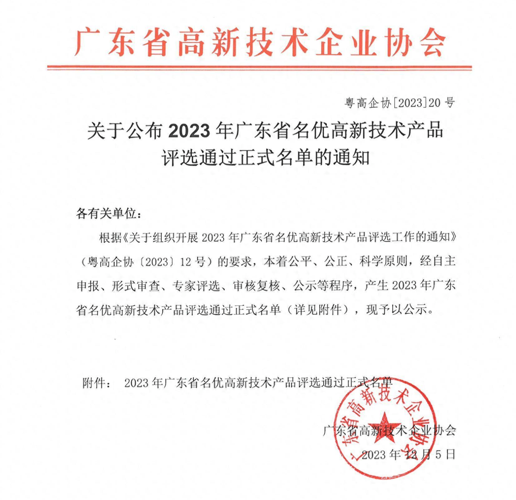 我司一產(chǎn)品獲評定為廣東省名優(yōu)高新技術產(chǎn)品